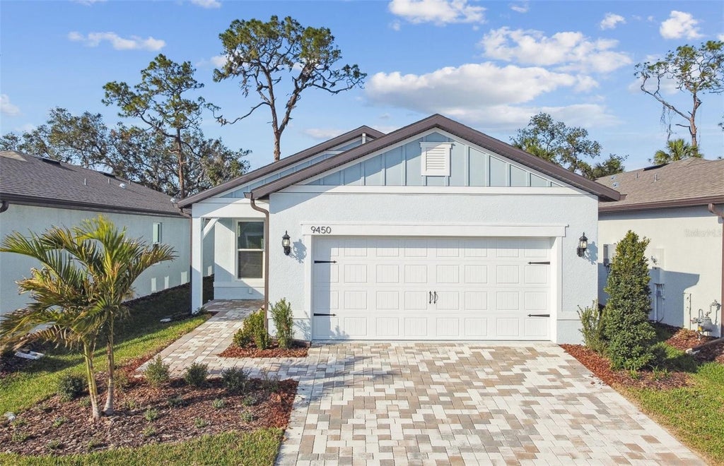 One or more photo(s) has been virtually staged. Move In Ready Available NOW!! Enjoy all the benefits of a new construction home and experience a new level of retirement living at Del Webb BayView. This active adult community is located 30 minutes from downtown Sarasota, St. Petersburg, and Tampa. BayView is centered around signature resort-style amenities so you can stay active and where your neighbors become long-time friends. This perfectly sized Contour model home features an open-concept floor plan with a designer kitchen that has white cabinets, quartz countertops, a large island, and Whirlpool stainless steel appliances including a gas stove top, built-in oven and microwave, dishwasher and counter depth refrigerator. There is luxury vinyl plank flooring in the main living areas and flex room, 18”x18” tile in the laundry room and bathrooms, and stain-resistant carpet in the bedrooms. The Owner’s suite has a spacious walk-in closet, and a bathroom with a walk-in shower and dual sinks. There’s also a versatile flex room, ideal for a home office or craft room. Additional features and upgrades include impact glass windows, faux wood blinds throughout home, extended screen lanai, utility sink in the garage and a Smart Home technology package with a video doorbell. Call or visit today and ask about our limited-time incentives and special financing offers!