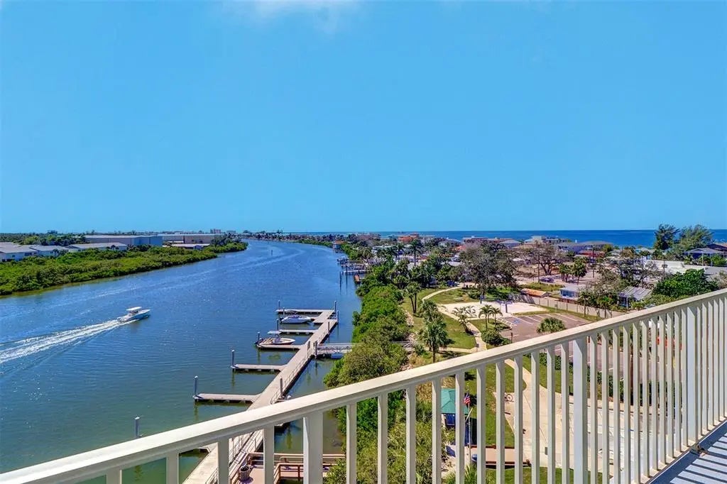 Don't miss this rare opportunity to own a stunning condominium in a prime location with spectacular water views. Near the white sand beaches of Indian Rocks Beach, this property offers luxury and proven rental income, making it an exceptional choice for investors. From your private balcony, you can enjoy unobstructed views of the Gulf of Mexico and Intracoastal Waterway, ideal for relaxing and watching breathtaking sunsets. This condominium is ideally just two blocks from the beach, top local restaurants, shops and a variety of water activities. Residents and guests can take advantage of dolphin and sunset cruises, fishing charters and other water-based adventures. The resort-style amenities are equally impressive, with included daily passes to Splash Harbour Water Park, which features a 600-foot lazy river, two 42-foot slides, a splash pad, pirate ship, dumping bucket, and a full-service bar and café. The property’s versatile living space includes a desirable split-floor plan with a second bedroom that can be rented out separately as a one-bedroom unit, both offering stunning waterpark views. This condominium is turnkey and rental-ready, boasting a strong rental history and the flexibility of a no minimum day rental policy. With at least two daily passes to the waterpark included, it’s ideal for investors seeking consistent income or owners who desire a relaxing retreat with excellent amenities. Additional features include a washer and dryer, exterior locker storage closet right out the front door for shoring beach equipment, open parking, Wi-Fi access and pet-friendliness for pets up to 20 pounds for owner only, and guest or tenant cannot have pets. The oversized community patio is an ideal spot for enjoying the spectacular sunsets over the Gulf of Mexico, providing an inviting space for relaxation and socializing. Whether you are looking for a lucrative investment property or a personal vacation getaway, this condominium offers everything you need in a desirable location. Schedule your viewing today and explore the endless possibilities this exceptional property has to offer.